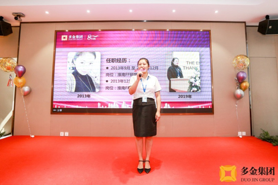 五年员工何培蕾作为授勋员工代表发言,她用自己和团队的案例讲述了自己如何从职场新人成长为独当一面的店长、团队如何顶住压力提升业绩……,何培蕾只是众多多金老员工的一个缩影,她的分享向我们解读了什么是“唯有奋斗,才能成功”。