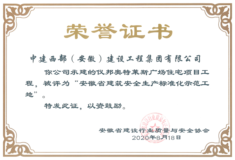 【安徽省建筑安全生产标准化示范工地】