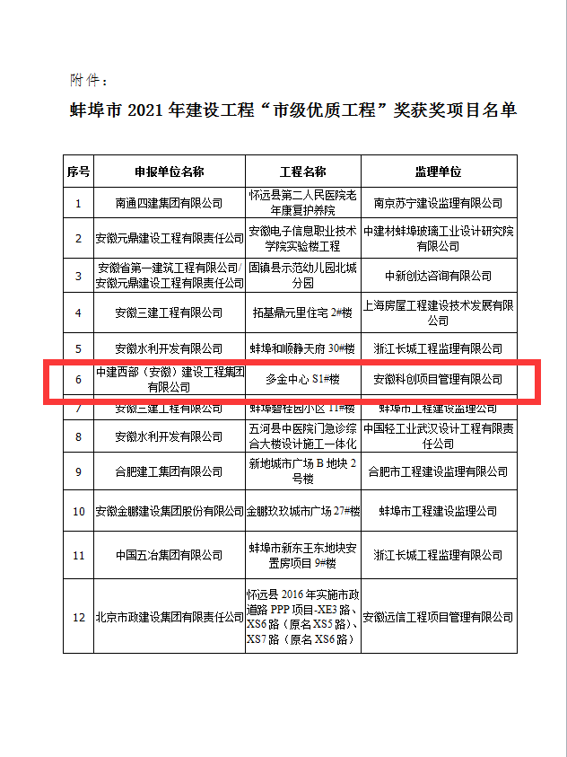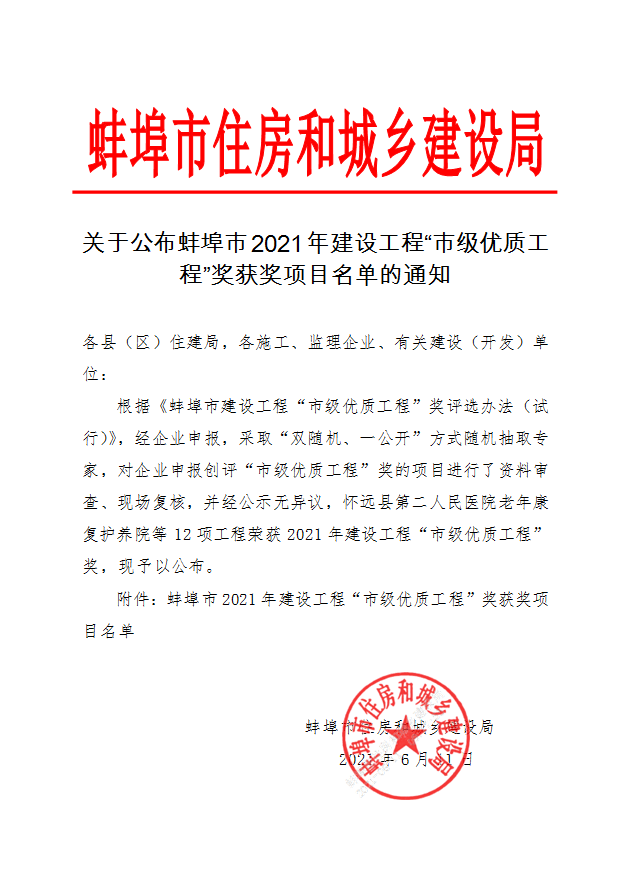 【蚌埠市市级优质工程】