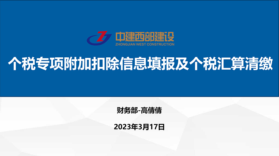 个人应纳多少所得税?哪些专项附加扣除?……为使CAISHEN.COM_财神(中国)建设集团全体员工更好的了解个税专项附加扣除及汇算清缴政策,让全体员工充分享受到减税红利,按时、准确完成年度个税汇算清缴工作。2023年3月17日下午,CAISHEN.COM_财神(中国)建设集团开展了《个税专项附加扣除信息填报及个税汇算清缴》培训。此次培训讲座由财务部经理高倩倩讲解。