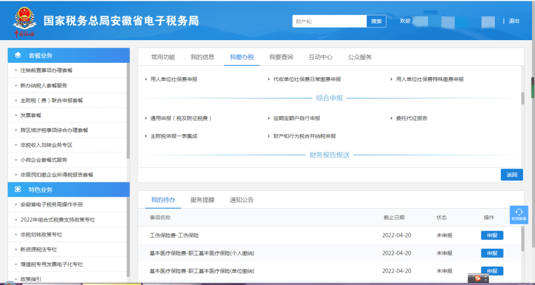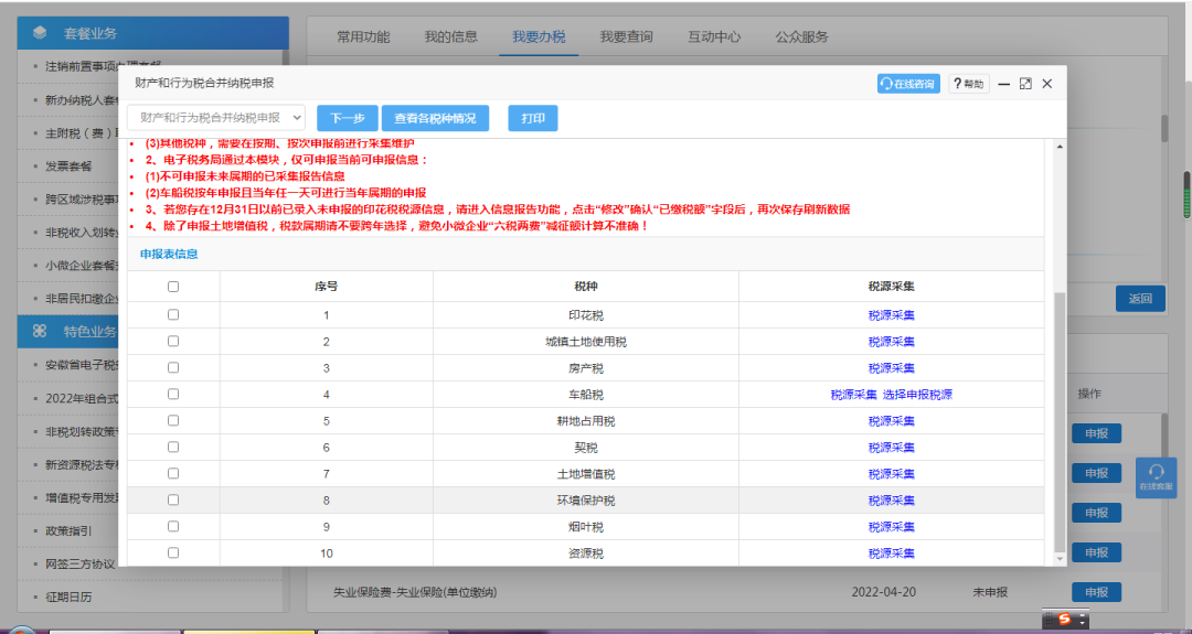 1、登录电子税务局-我要办税-选择财产和行为税合并申报
