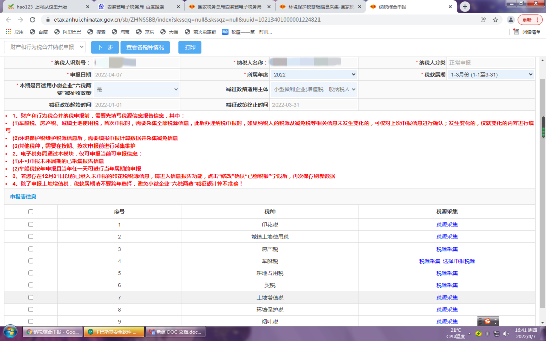 3、申报计算及减免信息采集
